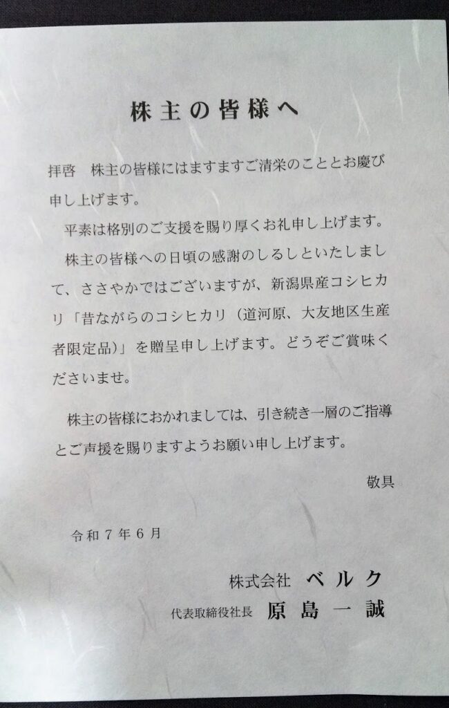 | 1,000株以上 | 5 kg | 4,000円相当 | 1,000円 ✕ 3 枚 |