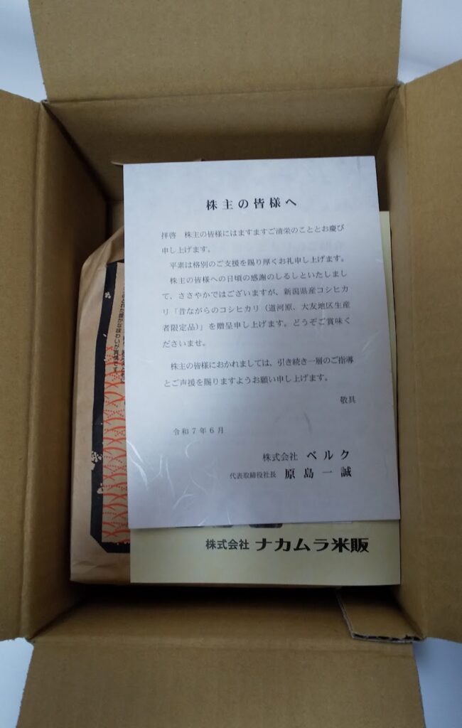 100株保有なので、選択をしていた『お米2 kg』が届きました。